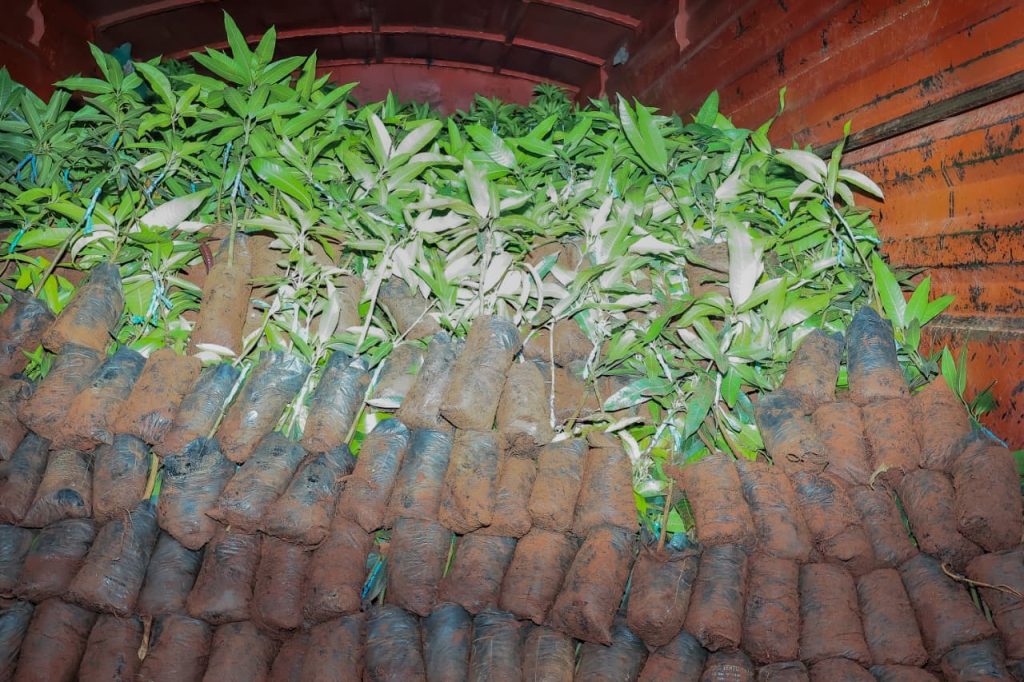 The distribution includes 55,000 avocado seedlings destined for 18 wards and 25,000 mango seedlings to be planted across 7 wards.
