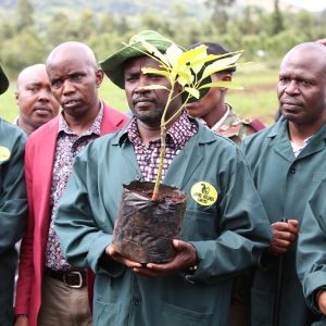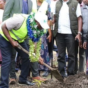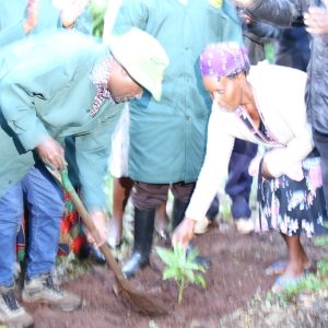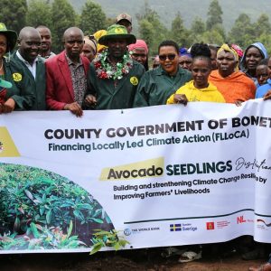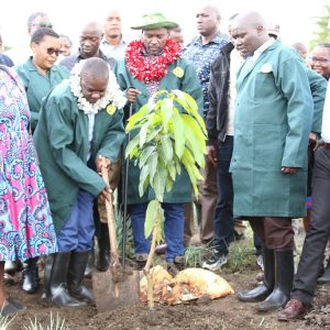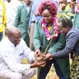 Governor Prof Hillary Barchok plants a mango seedling at Kipisaronik Village in Bomet East during the launch of World Bank funded programme, Financing Locally Led Climate Action (FLLoCA). Photo / Chirchir Kipyegon